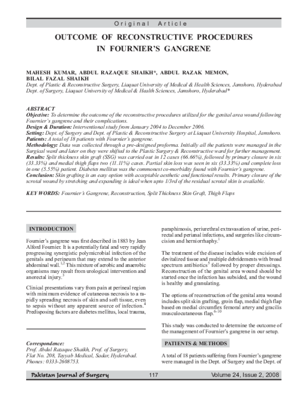 Pdf Outcome Of Reconstructive Procedures In Fournier S Gangrene Bilal Fazal Academia Edu